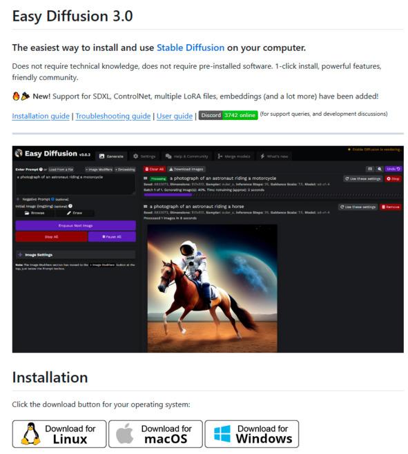 In order for us to install the Easy Diffusion program, follow the following link and download the required distribution for your operating system (MS Windows, Linux or MacOS):