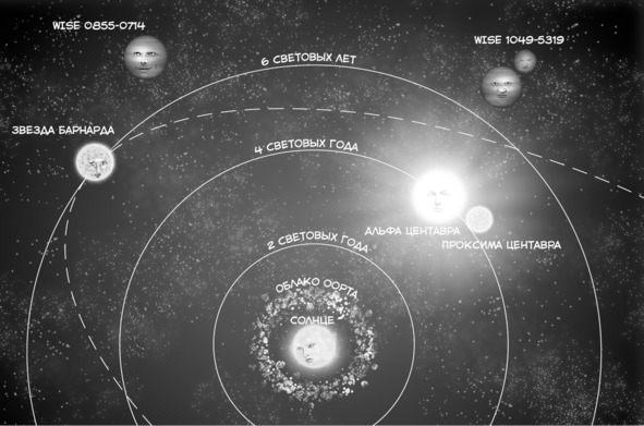 [8] Обыгрываются «звёздные рейды» в Солнечную систему (подробнее Часть 7. Глава 3) и звезда Барнарда, находящаяся в данный момент на расстоянии почти 6 световых лет от Солнца. Звезду Барнарда называют летящей звездой, в 11 800 году она достигнет минимального расстояния до Солнца — 3.8 светового года.