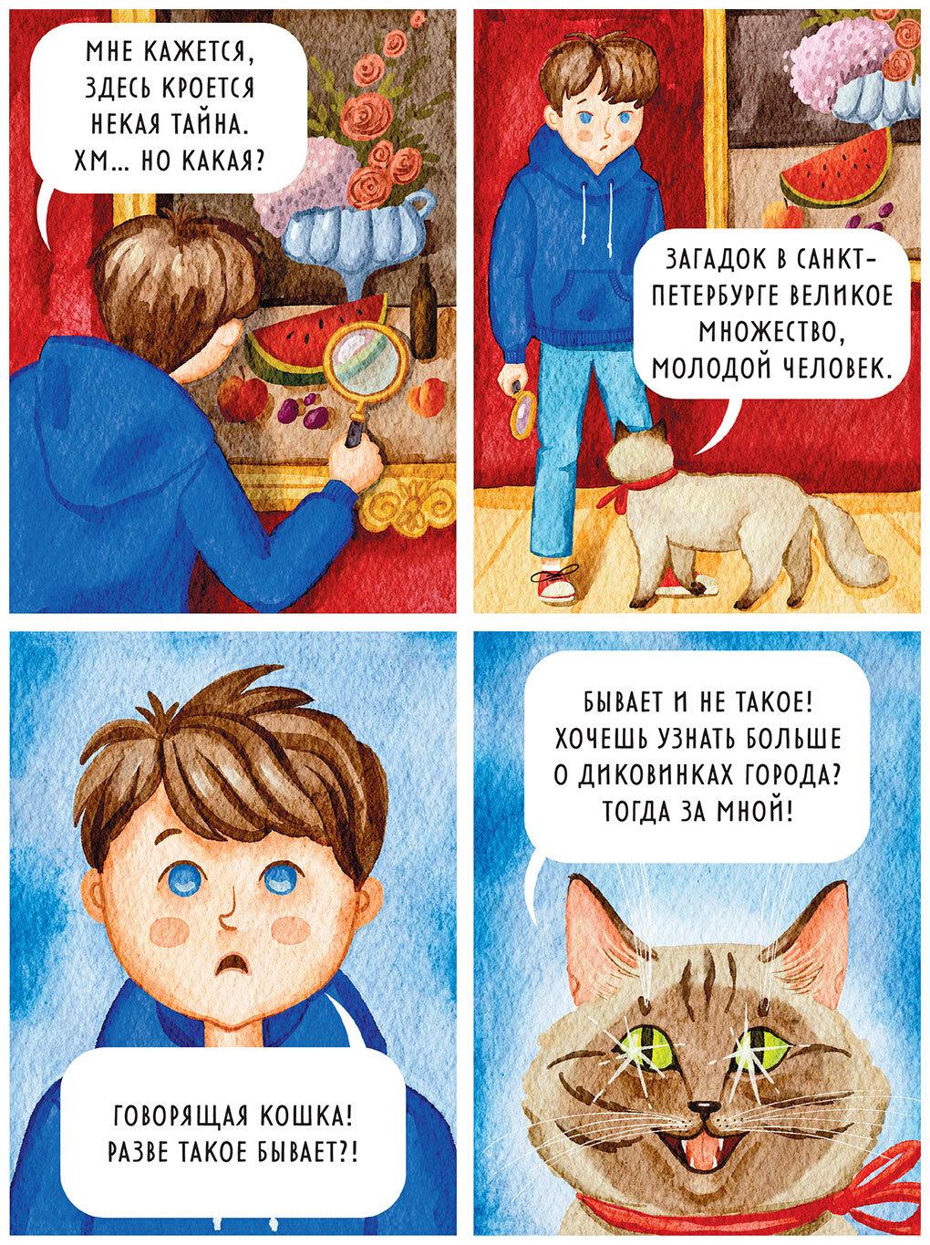 – Позволь представиться. Я – Матисса. У меня почетная должность – эрмитажная кошка. Я знаю все не только о музее, в котором мы с тобой находимся, но и о Санкт-Петербурге. Основная моя специализация – тайны и легенды этого города.