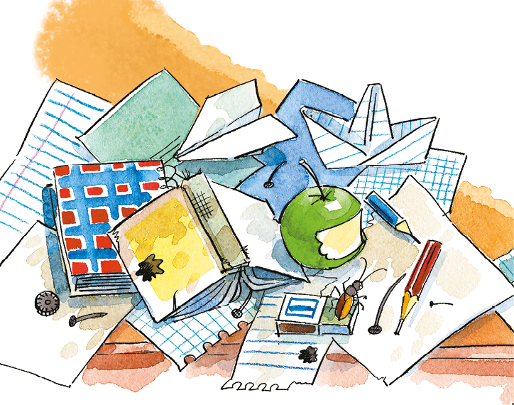 Легко сказать – убери! Я иногда просто удивляюсь, глядя на свой стол. Как много предметов на нём умещается! Тут рваные учебники и тетрадки в четыре листика, ручки, карандаши, линейки. Их, правда, теснят гвозди, шурупы, обрывки проволоки и другие нужные вещи. Вообще я очень люблю гвозди. Они у меня есть всех размеров и разной толщины. А мама почему-то их совсем не любит. Она много раз выбрасывала их, но они снова возвращаются на мой стол, как бумеранги. Мама сердится на меня за то, что я больше люблю гвозди, чем учебники. А кто виноват? Конечно, не я, а учебники. Не надо быть такими скучными.