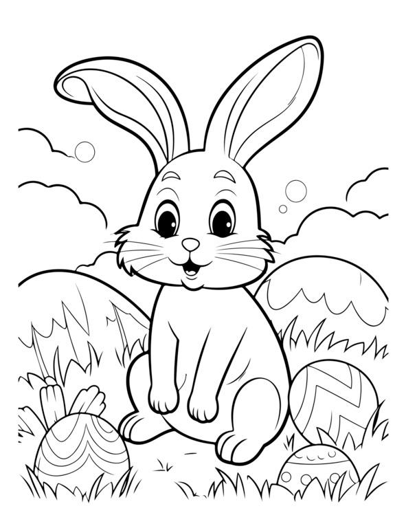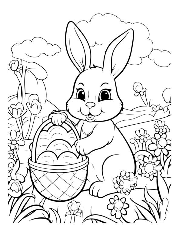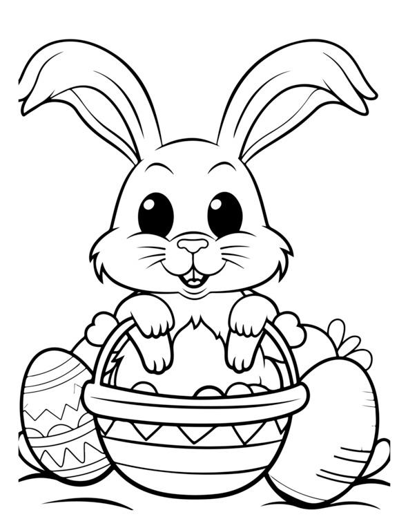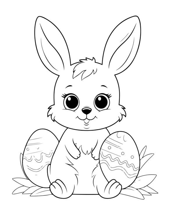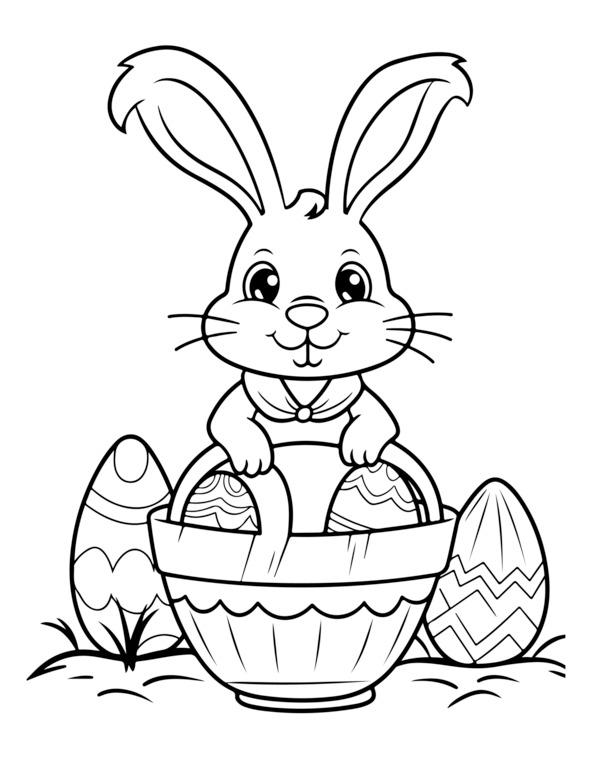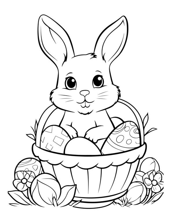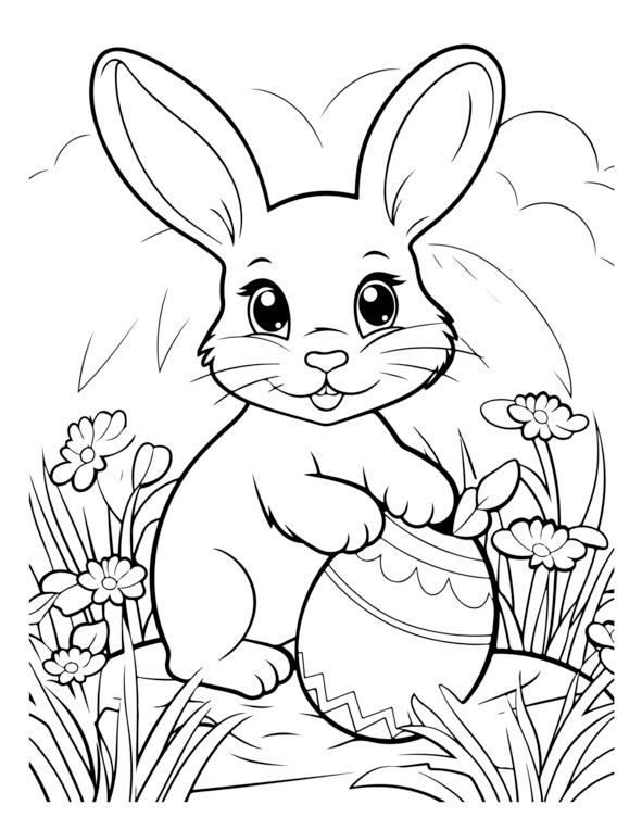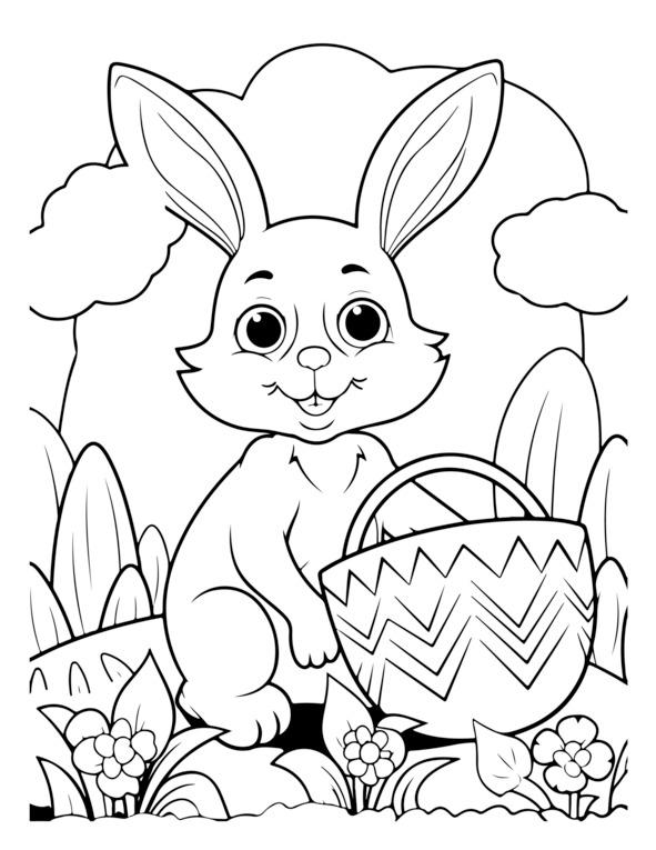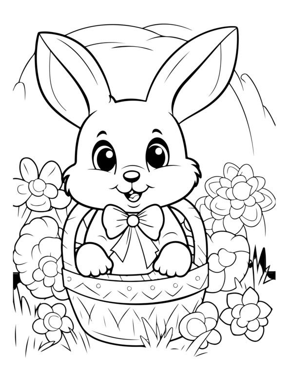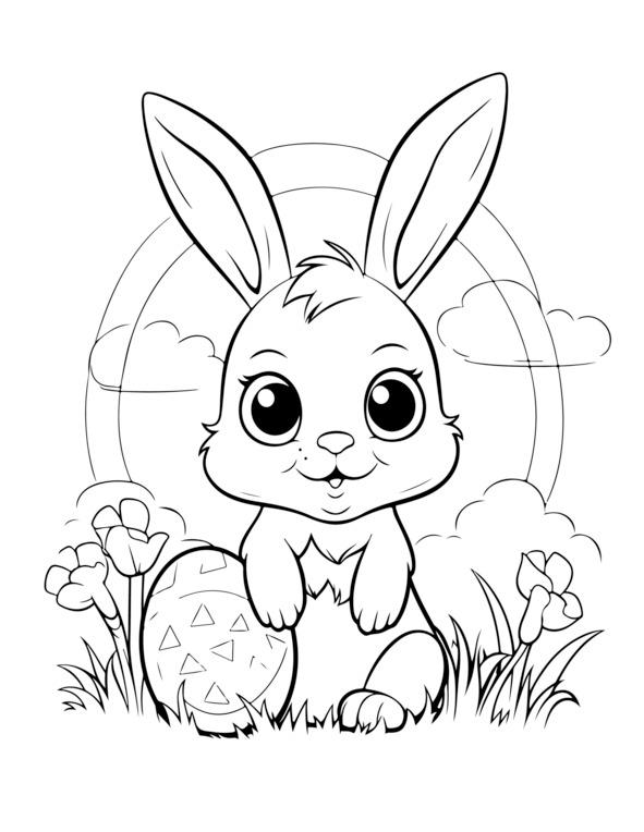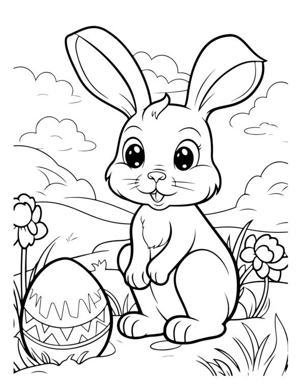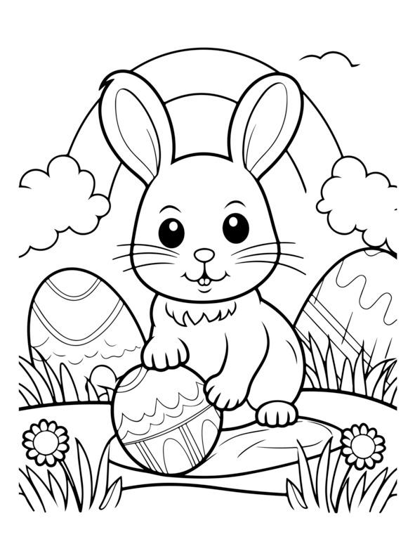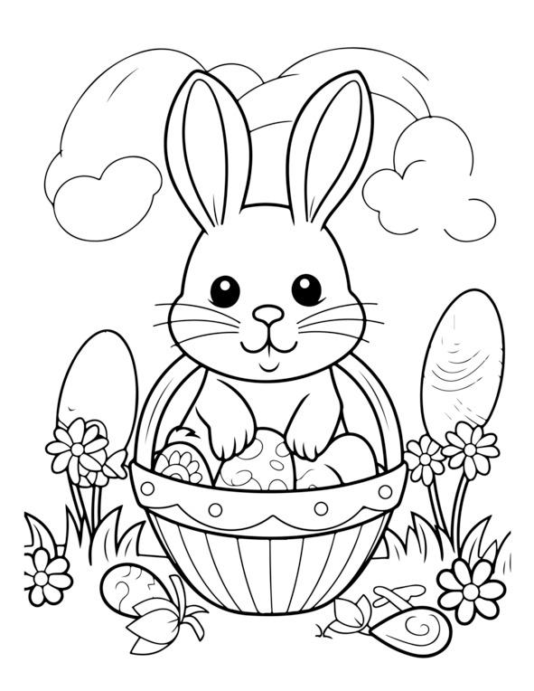 На этой странице раскраски «Счастливой Пасхи» изображено центральное пасхальное яйцо, украшенное замысловатыми узорами. Он окружен элементами пасхальной тематики, такими как цветы, кролики и цыплята. Для раскрашивания изображения обведены черно-белыми контурами. Вверху игривым шрифтом написано «С Пасхой». Дизайн детализирован, но подойдет как детям, так и взрослым.