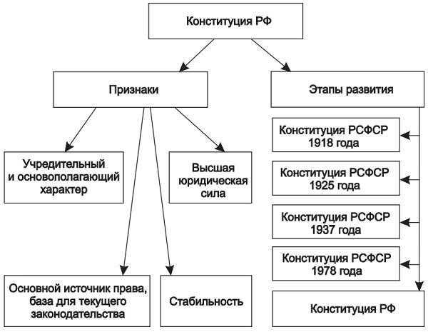 1. Российская Конституция имеет свою внутреннюю структуру и содержит три части: преамбула (введение), основная (разделы, главы, статьи), заключительные и переходные положения.