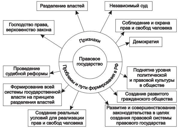 4. Россия провозглашается правовым государством — так характеризуется государство, которое во всей своей деятельности подчиняется праву и главной своей целью считает обеспечение прав и свобод человека. Современное демократическое правовое государство предполагает развитое гражданское общество, в котором взаимодействуют различные общественные организации, политические партии, в котором никакая идеология не может устанавливаться в качестве официальной государственной идеологии. Политическая жизнь в правовом государстве строится на основе идеологического, политического многообразия (плюрализма), многопартийности. Поэтому одним из путей формирования правового государства, одним из направлений этой работы является развитие гражданского общества, выступающего важным звеном между личностью и государством, в котором реализуется большая часть прав и свобод человека, утверждение принципов политического плюрализма.