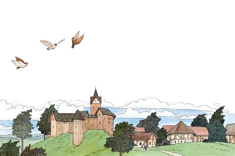 Но вот однажды утром серый голубок радостно захлопал крыльями: он увидел королевский замок.