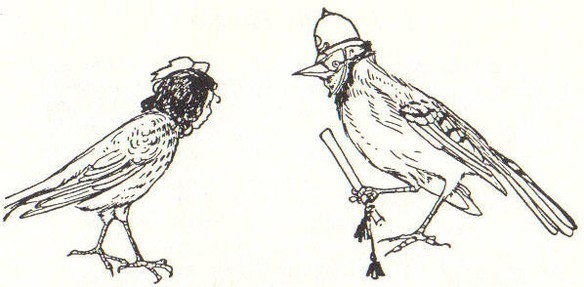 When the excitement of the morning had subsided and the forest was quiet again, Policeman Bluejay came to the nest of the child-larks, wearing his official helmet and club. You may be sure that one of the first things Twinkle asked him was if he knew where tingle-berries grew.
