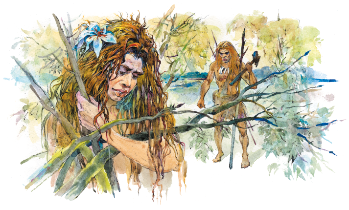 Гаммла знала, что Нао часто подстерегает её среди высоких трав и деревьев. Когда он появлялся перед ней с таким видом, будто готов кинуться на неё, девушка пугалась. Но в иные минуты его лицо не вызывало у неё неприязни. И теперь она одновременно желала и чтобы Нао погиб под ударами людоедов, и чтобы он вернул племени Огонь…