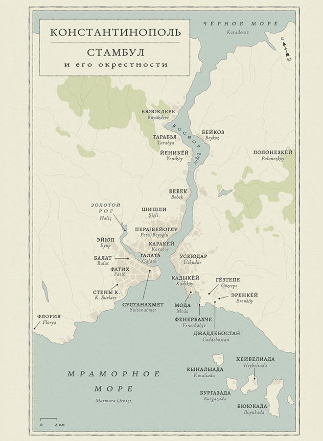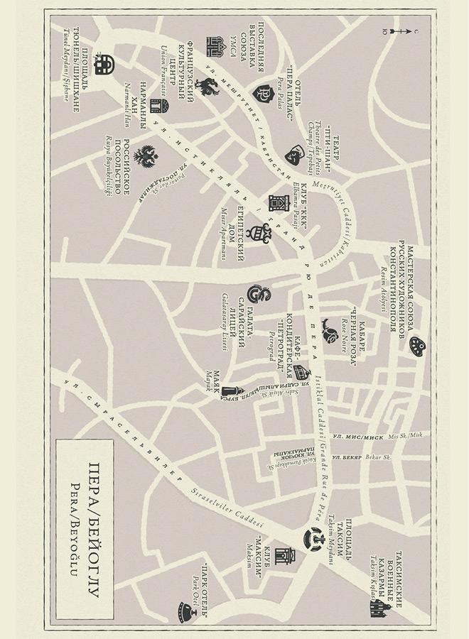 Карты, приведенные в книге, помогают лучше понять топографию Константинополя/Стамбула 1920–1930-х и служат путеводителем по упомянутым в книге местам — своеобразным точкам притяжения для русских эмигрантов. Многие районы города (особенно Пера/Бейоглу) за последние сто лет претерпели существенные изменения: некоторые улицы и здания сегодня не существуют, а какие-то учреждения «переехали». Кроме того, некоторые улицы, районы и части города сегодня носят совсем другие имена, нежели столетие назад. Что касается византийских памятников на Историческом полуострове и в его окрестностях, то названия (равно как и локации) некоторых из них все еще ставятся многими учеными под сомнение.