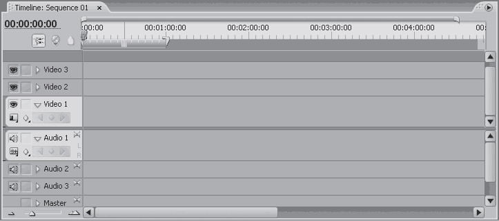 Окно Timeline (Окно монтажа) – это, пожалуй, самое главное окно программы Adobe Premiere Pro. В этом диалоге вы будете размещать и монтировать исходные компоненты фильма (видеоклипы, звуковые файлы и графику). Окно Timeline (Окно монтажа) состоит из нескольких видео– и звуковых дорожек. На видеодорожках вы будете размещать клипы и графику, то есть элементы изображения вашего фильма, а на звуковых – звуковые файлы (элементы звукового сопровождения) (рис. 1.4).