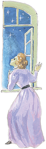 Потом в детскую вошла миссис Дарлинг в белом вечернем платье. Венди очень любила, когда она надевала это платье. На миссис Дарлинг были надеты ожерелье и браслет. Браслет принадлежал Венди. Но пока она вырастет, миссис Дарлинг его одалживала у Венди. А Венди очень любила давать свой браслет маме поносить.