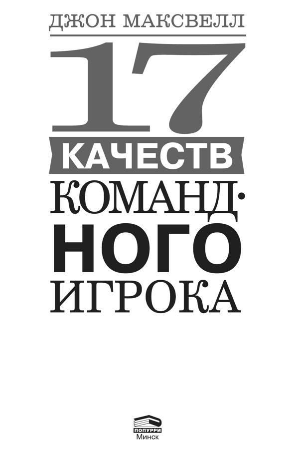 Перевод с английского выполнил М. А. Бабук по изданию: THE 17 ESSENTIAL QUALITIES OF A TEAM PLAYER: Becoming the Kind of Person Every Team Wants / John C. Maxwell.