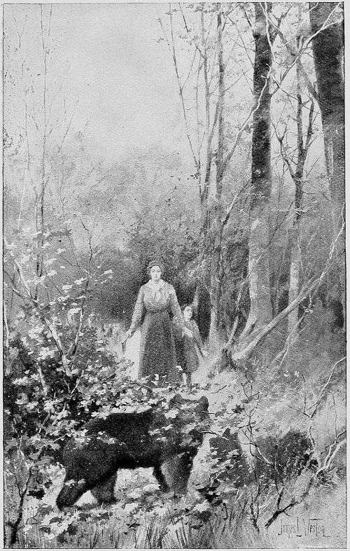 The head of the procession was Kirstie Craig herself, a tall, erect, strong-stepping, long-limbed woman in blue-grey home-spuns, with a vivid scarlet kerchief tied over her head. She was leading, by a rope about its horns, a meekly tolerant black-and-white cow. To her left hand clung a skipping little figure in a pink calico frock, a broad-brimmed hat of coarse straw flung back from her hair and hanging by ribbons from her neck. This was the five-year-old Miranda, Kirstie Craig’s daughter. She had ridden most of the journey, and now was full of excited interest over the approach to her new home. Following close behind came the yoke of long-horned, mild-eyed steers,—Bright, a light sorrel, and Star, a curious red-and-black brindle with a radiating splash of white in the middle of his forehead. These, lurching heavily on the yoke, were hauling a rude “drag,” on which was lashed the meagre pile of Kirstie’s belongings and supplies. Close at Star’s heaving flank walked a lank and tow-haired boy from the Settlement, his long ox-goad in hand, and an expression of resigned dissatisfaction on his grey-eyed, ruddy young face. Liking, and thoroughly believing in, Kirstie Craig, he had impulsively yielded to her request, and let himself be hired to assist her flight into exile. But in so doing he had gone roughly counter to public opinion; for the Settlement, though stupidly inhospitable to Kirstie Craig, none the less resented her decision to leave it. Her scheme of occupying the deserted cabin, farming the deserted clearing, and living altogether aloof from her unloved and unloving fellows, was scouted on every hand as the freak of a madwoman; and Young Dave, just coming to the age when public opinion begins to seem important, felt uneasy at being identified with a matter of public ridicule. He saw himself already, in imagination, a theme for the fine wit of the Settlement. Nevertheless, he was glad to be helping Kirstie, for he was sound and fearless at heart, and he counted her a true friend if she did seem to him a bit queer. He was faithful, but disapproving. It was Old Dave alone, his father, who backed the woman’s venture without criticism or demur. He had known Kirstie from small girlhood, and known her for a brave, loyal, silent, strongly-enduring soul; and in his eyes she did well to leave the Settlement, where a shallow spite, sharpened by her proud reticence and supplied with arrows of injury by her misfortunes, made life an undesisting and immitigable hurt to her.