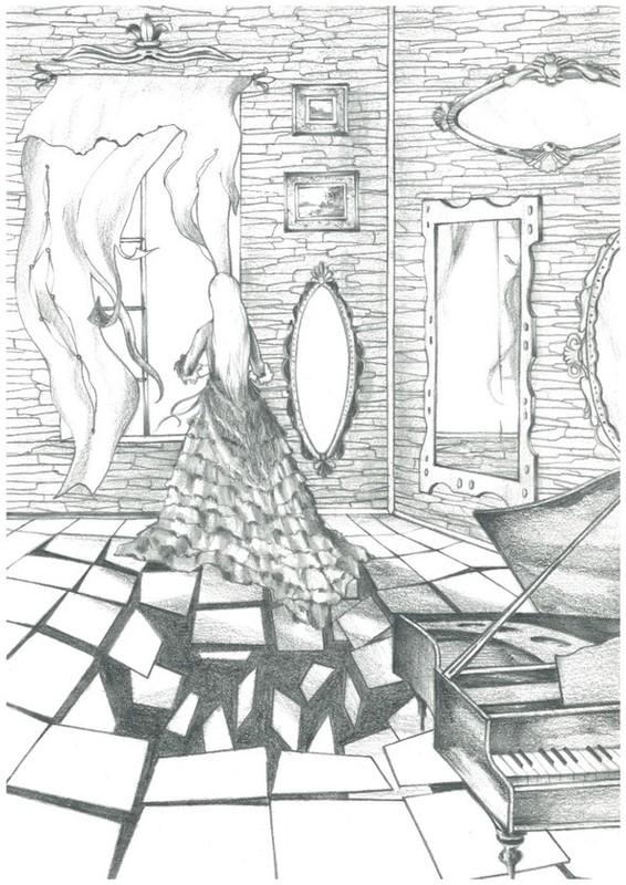 Вдруг я оказываюсь в небольшой комнате, стены, которой выполнены из каменной кладки. Кругом висят различные картины и зеркала, здесь много зеркал разных форм и размеров. Посередине комнаты стоит фортепиано из чёрного полированного дерева, а напротив него большое, почти во весь рост окно. Оно открыто и шторы трепещут от порывов ветра. Только сейчас я заметила, что в комнате нахожусь не одна… Застыв у окна, стоит девушка, она молча смотрит куда-то вдаль. Её длинные каштановые распущенные волосы не поддаются силе ветра, врывающегося в окно. Эти прекрасные волосы странно неподвижны, в то время как ветер, гуляя по всей комнате, шевелит подол её платья. Ещё одна странность: девушка не отражается ни в одном зеркале… Вдруг волосы девушки начинают белеть сверху до кончиков, становясь окончательно белоснежными. Внезапно она закричала, как раненый зверь, предчувствующий свою погибель. Вместе с этим комната начала разрушаться и погружаться во тьму, пол трескаться и падать в неизвестность. Там внизу ничего не было, лишь пустота… Всё здесь почти разрушилось. Поглощающая тьма достигла и моих ног, заставляя чувствовать леденящий холод. Я не ощущаю страха. Я знаю, это очередной мой сон…