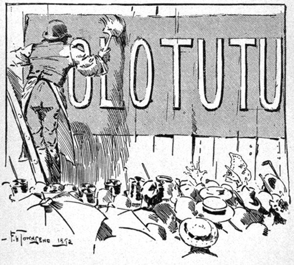 "'"But what will 'Olotutu' be?" he inquired at last. "A patent medicine, a tobacco, a soap, a mine, a comic paper, a beverage, a tooth-powder, a hair-restorer?"