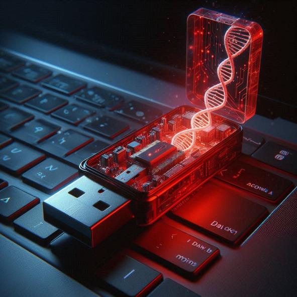 Однажды Егор был на экскурсии в Академии наук в отделе искусственного интеллекта. Там он нашёл на полу флешку. Похоже, её обронил один из учёных. Егор поднял вещь и осмотрел: обыкновенная, вероятно, больше среднестатической, флешка красного цвета, только металлическая часть, возможно, чересчур острая. Она выглядит и сверкает, как лезвие ножа.