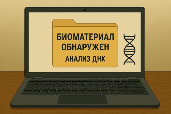 «Ай», — сказал Егор. Тут он услышал звук уведомления на ноутбуке и посмотрел на экран. Там высветилась надпись «Биоматериал обнаружен. Анализ ДНК».