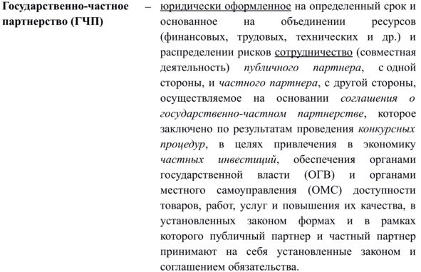 Предлагаемый документ устанавливает единство терминологии ГЧП-сферы, подробно описывает концепцию государственно-частного партнерства с точки зрения управленческого, юридического, финансового и технологического аспектов и весь — постадийно и пофазно — управленческий процессии систему ГЧП-проекта.