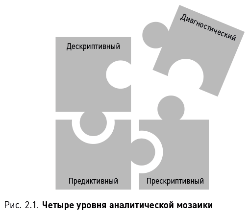 А сейчас, после краткого экскурса в историю, давайте попробуем разобраться в самих четырех уровнях аналитики. Затем мы покажем вам, как сотрудники на самых разных уровнях, от рядовых работников до топ-менеджеров, могут применять эти четыре уровня: 1) для продвижения стратегии работы с данными и аналитикой; 2) для принятия более разумных решений на основе данных; 3) для формирования правильного видения данных и аналитики. Понимание четырех уровней аналитики позволяет организации не стрелять по мишени вслепую, а осуществлять реальную работу по формированию стратегии.