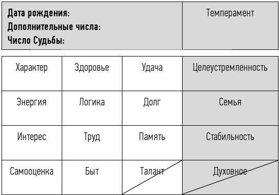 Психоматрица по системе Ольги Перцевой