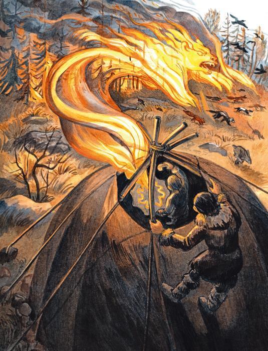 Она пошла туда и не успела хлопнуть в ладоши, как вода заклокотала и вместе с пузырями всплыл маленький человечек.