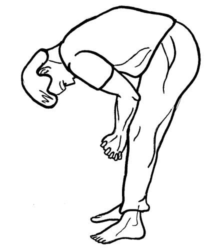 После третьего повтора выдохните и наклонитесь в последний раз. Пусть руки свисают свободно. Если у вас получилось коснуться пола, слегка согните пальцы рук. Голову не напрягайте, позвольте растянуться мышцам шеи. Дышите свободно. Сохраняйте положение в течение нескольких секунд, после чего не спеша выпрямитесь.
