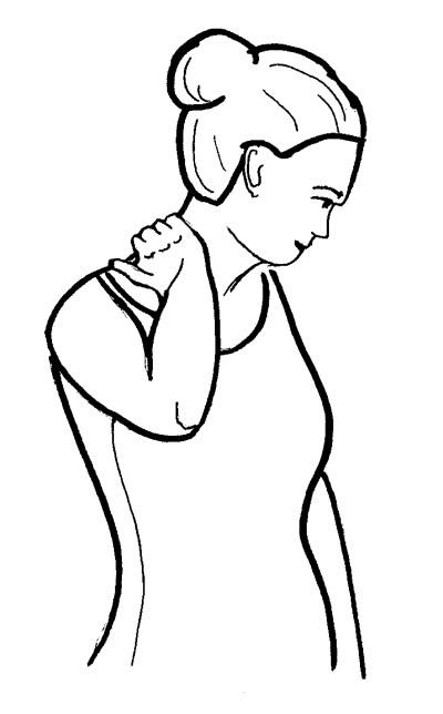 Если вам трудно все время удерживать руки сцепленными сзади, то перед каждым повтором расслабьте их. Затем слегка потрясите руками, осторожно покачайте головой вперед-назад и примите исходное положение.