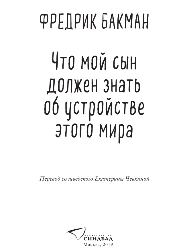 Что мой сын должен знать об устройстве этого мира / Фредрик Бакман ; [пер. со швед. Е. Чевкиной]. — М.: Синдбад, 2019.