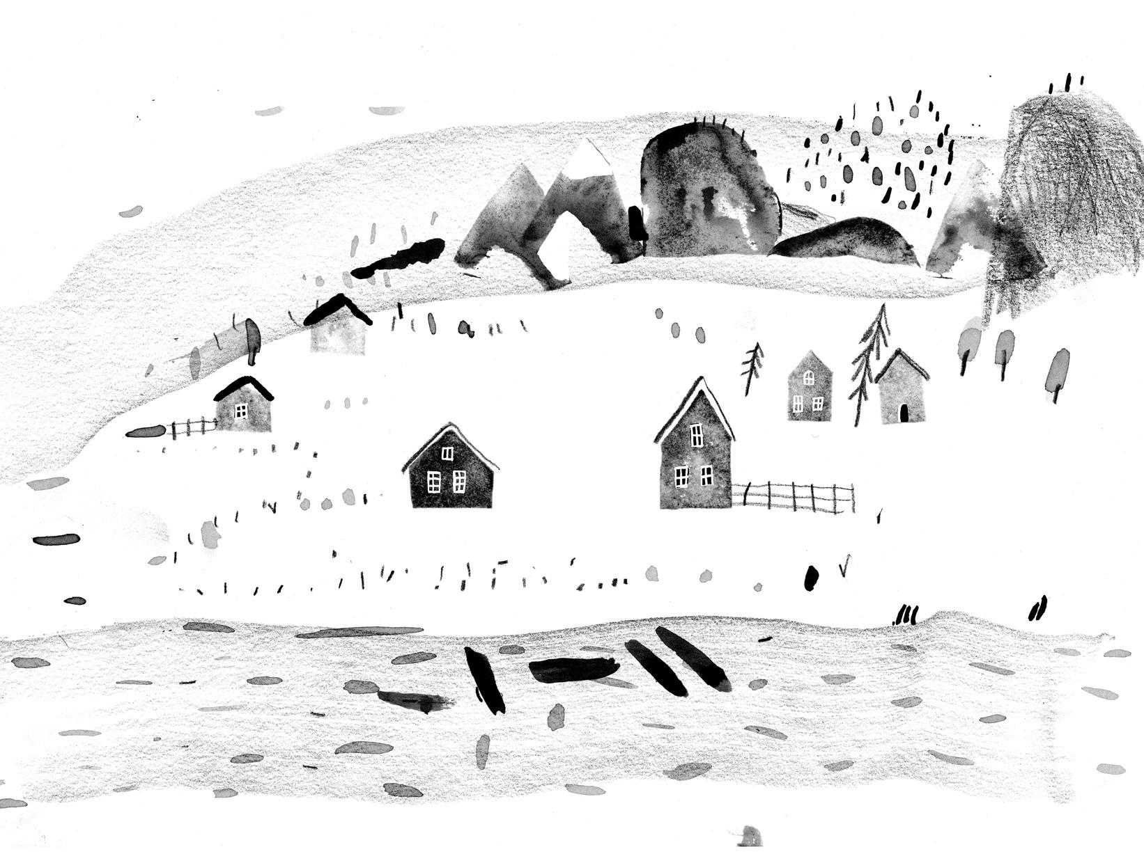 На самом-самом верху, выше холмов, есть хутор Юна-с-горы. Он дедов лучший друг. А за хутором еще гора. Надо пройти вершину и еще немного, и тогда увидишь нашу маленькую горную избушку. До нее два часа ходу.