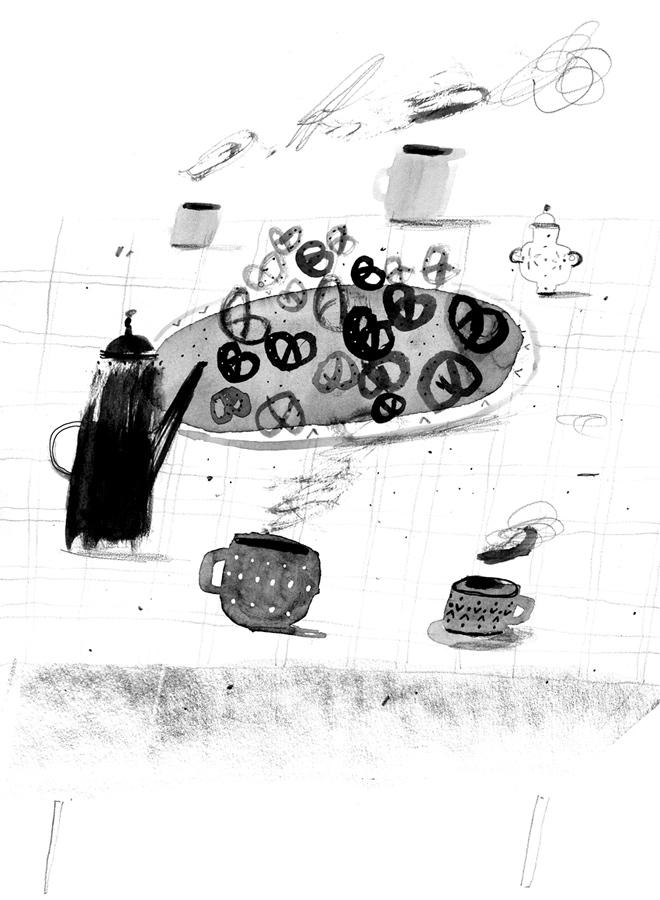 — Слушай, — сказала Лена, — по-моему, пора пойти посмотреть, не собирается ли кто-нибудь у вас пить кофе с плюшками.