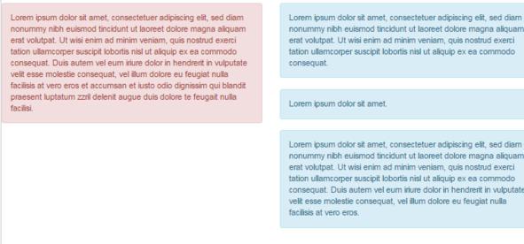 <div class=«alert alert-info»> Lorem ipsum dolor sit amet, consectetuer adipiscing elit, sed diam nonummy nibh euismod tincidunt ut laoreet dolore magna aliquam erat volutpat. Ut wisi enim ad minim veniam, quis nostrud exerci tation ullamcorper suscipit lobortis nisl ut aliquip ex ea commodo consequat. Duis autem vel eum iriure dolor in hendrerit in vulputate velit esse molestie consequat, vel illum dolore eu feugiat nulla facilisis at vero eros. </div>