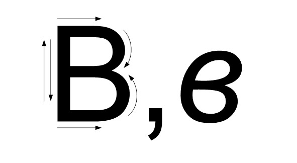 В графике этой буквы вселенский тор-круг начал изменяться, проявляться на физическом плане бытия, вырастает вертикальная стойка и полочка сверху. То есть графика буквы б есть практически зеркальный перевёртыш графики строчной буквы а. Эта буква внешне представляет собой кружок и полочку, сверху, символизирующую начало нового цикла развития, полочка есть покрытие, как бы «крыша» его. Причём эта «крыша», устремлена во времени вперёд, в будущее.