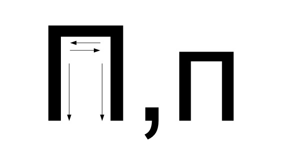 До вредительской псевдореформы одна тысяча девятьсот восемнадцатого года она так и называлась — «твердо». Приземлённость и твёрдость этого звука в энергетике графики «обеспечивается» защитой сверху в виде верхней горизонтальной буквы.