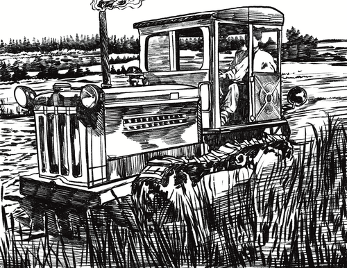 The man sitting in the iron seat did not look like a man; gloved, goggled, rubber dust mask over nose and mouth, he was a part of the monster, a robot in the seat. The thunder of the cylinders sounded through the country, became one with the air and the earth, so that earth and air muttered in sympathetic vibration. The driver could not control it — straight across country it went, cutting through a dozen farms and straight back. A twitch at the controls could swerve the cat’, but the driver’s hands could not twitch because the monster that built the tractor, the monster that sent the tractor out, had somehow got into the driver’s hands, into his brain and muscle, had goggled him and muzzled him — goggled his mind, muzzled his speech, goggled his perception, muzzled his protest. He could not see the land as it was, he could not smell the land as it smelled; his feet did not stamp the clods or feel the warmth and power of the earth. He sat in an iron seat and stepped on iron pedals. He could not cheer or beat or curse or encourage the extension of his power, and because of this he could not cheer or whip or curse or encourage himself. He did not know or own or trust or beseech the land. If a seed dropped did not germinate, it was nothing. If the young thrusting plant withered in drought or drowned in a flood of rain, it was no more to the driver than to the tractor.