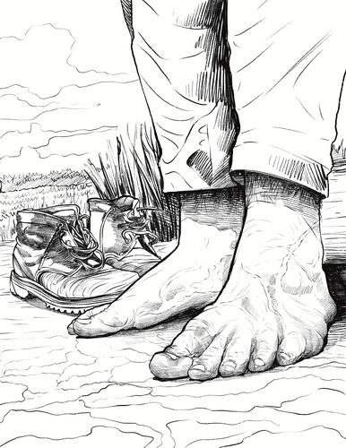 The hiker looked down at the dusty yellow shoes. “Didn’t have no other shoes,” he said. “Guy got to wear ’em if he got no others.”