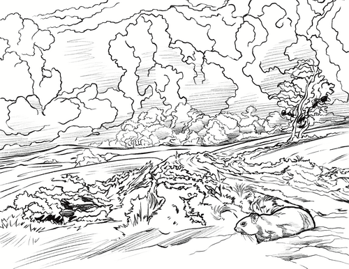 And now a light truck approached, and as it came near, the driver saw the turtle and swerved to hit it. His front wheel struck the edge of the shell, flipped the turtle like a tiddly-wink, spun it like a coin, and rolled it off the highway. The truck went back to its course along the right side. Lying on its back, the turtle was tight in its shell for a long time. But at last its legs waved in the air, reaching for something to pull it over. Its front foot caught a piece of quartz and little by little the shell pulled over and flopped upright. The wild oat head fell out and three of the spearhead seeds stuck in the ground. And as the turtle crawled on down the embankment, its shell dragged dirt over the seeds. The turtle entered a dust road and jerked itself along, drawing a wavy shallow trench in the dust with its shell. The old humorous eyes looked ahead, and the horny beak opened a little. His yellow toe nails slipped a fraction in the dust.