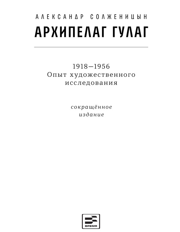 Архипелаг ГУЛАГ, 1918—1956. Опыт художественного исследования : сокращённое изд. / Александр Солженицын ; [сокращение, вступ. статья, справ. аппарат Н. Солженицыной]. — М. : Время, 2017.
