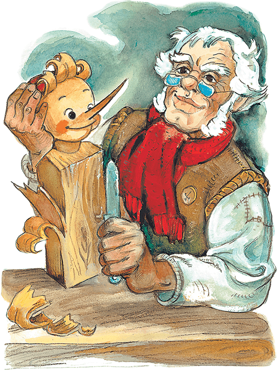 Давным-давно в городке на берегу Средиземного моря жил старый столяр Джузеппе, по прозванию Сизый Нос.