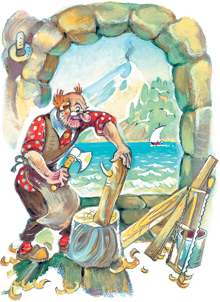 Джузеппе надел очки, обмотанные бечёвкой, – так как очки были тоже старые, – повертел в руке полено и начал его тесать топориком.