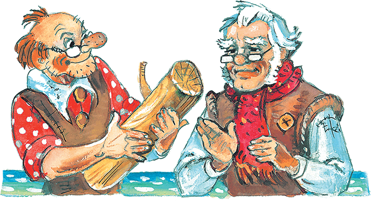 – Я тебе дело говорю, Карло… Возьми ножик, вырежь из этого полена куклу, научи её говорить всякие смешные слова, петь и танцевать, да и носи по дворам. Заработаешь на кусок хлеба и стаканчик вина.