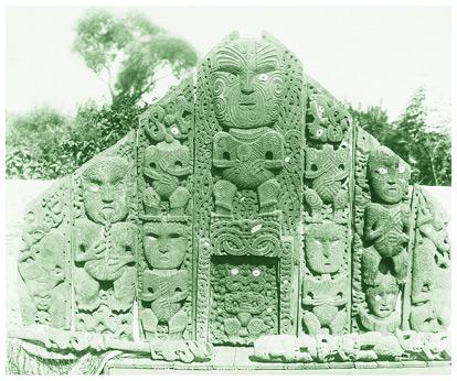 Фронтон общинного дома маори. В общинных домах проходило большинство церемоний, таких как свадьбы и похороны.