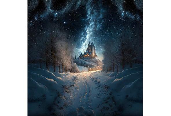 Просидев так какое-то время, Крис вдруг заметила, что ветер больше не рвет с нее одежду и не треплет волосы. Убрав руки от лица и открыв глаза, она не поверила своим глазам! Во-первых, метель стихла, в воздухе кружились отдельные пушистые снежинки, как на Рождественских открытках. Во-вторых, перед ней была дорога, которая вела к… замку! Настоящему, как в сказках — со шпилями и башнями. И в этом замке горел свет! Окна были освещены, словно обещая Крис, что там она найдет кров и тепло.