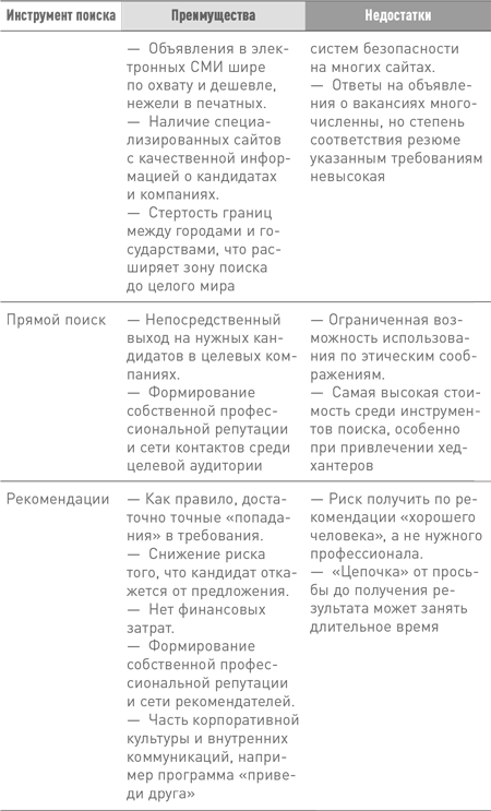 Далее мы рассмотрим плюсы и минусы каждого инструмента поиска. Однако весь опыт АНКОРа свидетельствует о том, что наилучший результат достигается при одновременном использовании нескольких инструментов, если это возможно и целесообразно для каждой конкретной вакансии.