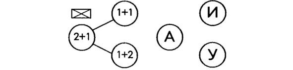 Три кружка справа (учитель указывает на рис. 1) обозначим буквами: домик-почта — А, верхний домик — И, ни