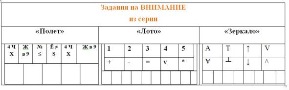 1. Задания из серии «Полет», «Лото», «Зеркало»;
