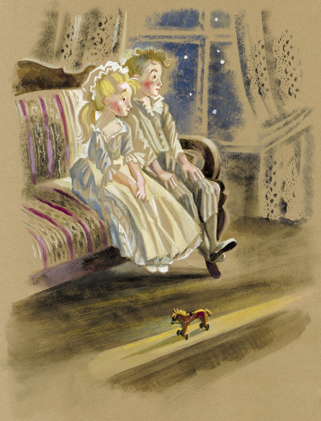 Шу-шу! Шур-шур! – таинственно доносилось из соседней комнаты. Фриц и Мари сидели в полутёмной спальне и прислушивались. До поры до времени им не разрешалось входить в гостиную, где, наверное, уже сверкала праздничными огоньками свечей рождественская ёлка. Мари, которой только-только исполнилось семь лет, всё спрашивала своего старшего брата: