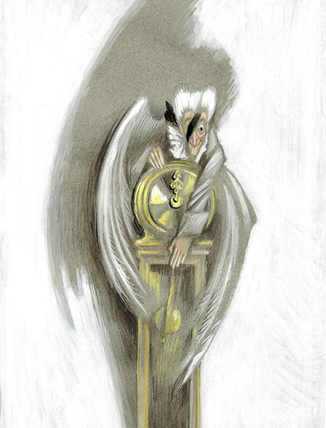 И этот некрасивый маленький человечек был большим искусником. Он умел делать всё. Даже чинить часы. Стоило замереть маятнику или остановиться большой и маленькой стрелкам, этот волшебный мастер приступал к делу. Сняв сюртучок и повязавшись кожаным фартуком, крёстный Дроссельмейер вынимал из кармана коробочку с блестящими инструментами и принимался тыкать в часы шильцами и крутить шестерёнки отвёртками. Мари всегда жалела бедные часики, но они не обижались на мастера, а, наоборот, в благодарность за заботу начинали весело тикать.