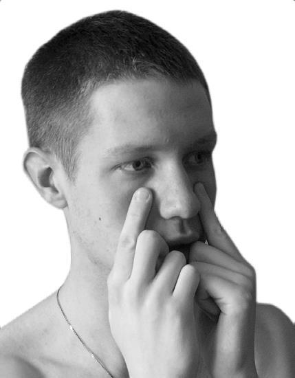 Надавливают симметричные возбуждающие точки у наружных уголков глаз (фото 7). Затем симметричные успокаивающие точки под глазами, по ходу гайморовых пазух (выступающие кости лица – фото 8). По 1 минуте легко указательными пальцами синхронно надавливается каждая пара точек. Последовательность проведения: сверху вниз. Акупунктура поможет и в случае разразившегося насморка, и как профилактическое средство.