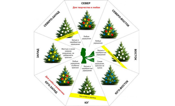 Если загадано желание о прибавлении в семье, то елку нужно поставить в западной части помещения. Для укрепления здоровья елку ставят по центру. Если елка будет стоять в восточной части большой комнаты, то связи в семье будут укрепляться, семейный союз будет обретать большую прочность. Для карьерного роста и успеха в бизнесе нужно поставить праздничное дерево в северной стороне жилого пространства. Чтобы отправиться в новом году в дальнее путешествие или обрести новые знания, елку располагают в северо-западной части дома. Перед выбором нужного места для елки следует сосредоточиться на собственных желаниях и понять, что действительно хотелось бы обрести в наступающем новом году. Учение фен-шуй — это не просто свод правил по расстановке предметов в жилом пространстве.
