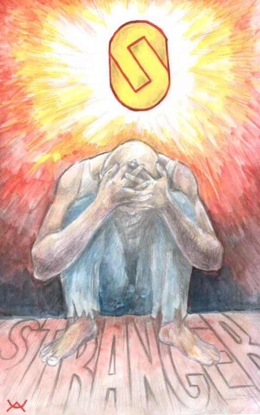 Мне сказали, что это «дичь», какая — то и что по-другому не может быть в жизни. Но я продолжил говорить про то, что тот, кто посвятил всю свою жизнь выковыванию одного единственного клинка, не будет распылять свои силы на те желания, что ему навязаны из вне. Для такого человека, в мыслях мечта может иметь первостепенное значение и главенствовать над всем миром и другими желаниями. Что многие мечты можно исполнить в одиночку и, что есть мечты, которые словно ураган, сметают на своём пути многие тысячи чужих грёз. Говорил им о том, что мечта может стать поддержкой или уничтожить того, кто ей грезит. Что даже если мечта покинула человека, частицы её навсегда останутся в сердце, как шрапнель. Что каждый должен хоть раз в жизни, но представить себя мучеником судьбы, который преследует свою мечту, а не просто должен плыть по течению и принимать всё, как должное. Может быть, я был уже пьян или просто пелена с глаз спала? Ни кто тогда, в тот вечер, больше ни чего не сказал. И плевать мне было на чьё — то мнение, вообще — то. Больше с ними мне не довелось увидеться. Я не «древолаз», как можно подумать, могу «включать» высокообразованного интеллигента и видеть окружающий меня мир, глазами глубокоуважаемого мною Сократа. Такие преображения будут здесь постоянно, считай читатель, что у меня раздвоение личности. Погнали дальше, а дальше — больше. Однажды в один из очередных промозглых осенних вечеров, на мой взгляд, произошла судьбоносная встреча. На выходе из магазина, ко мне подошёл потрёпанный и вонючий дед. Обратившись по имени, он протянул свою ладонь для рукопожатия и въедливо посмотрел на меня. Я тогда был, как раз не в духе и помню, подумал: «Тебе — то чего надо, замшелый старик?». Но из приличия, с отвращением, всё — же пожал ему руку, обратив внимание на странный браслет, похожий на смарт — часы и тут — же меня, как — будто перенесло в другое измерение. Я очутился на какой — то бетонной башне. В обе стороны от неё далеко тянулась отвесная стена, внизу практически ни чего не было видно. Разглядел только остовы военной техники, как мне показалось, и человеческие останки. На горизонте, среди руин, виднелось зарево.