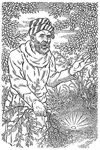 He flung open the door and in walked tiger, panther, hyena, and wolf. Going to the corner of his hut, the huntsman took down from a cord, stretched across the corner, the dried weeds which he had gathered the fall before because he had noticed that those weeds were antidotes for poisoned wild animals. Those poisoned animals had sniffed the antidote from afar and gathered at his door. When he opened that door they followed him to the corner of the hut, in peace with one another because of their common distress. He fed each one the antidote for which it came, and each one licked his hand with thanks and turned harmlessly out the door. Then the huntsman closed the door after the last one, and went to his rest as though nothing remarkable had happened.