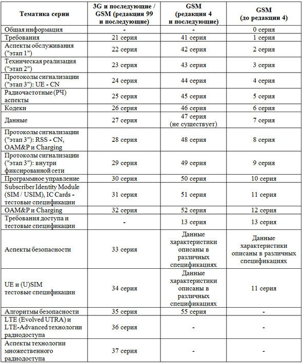 Таблица 1.3. Классификация спецификаций 3GPP